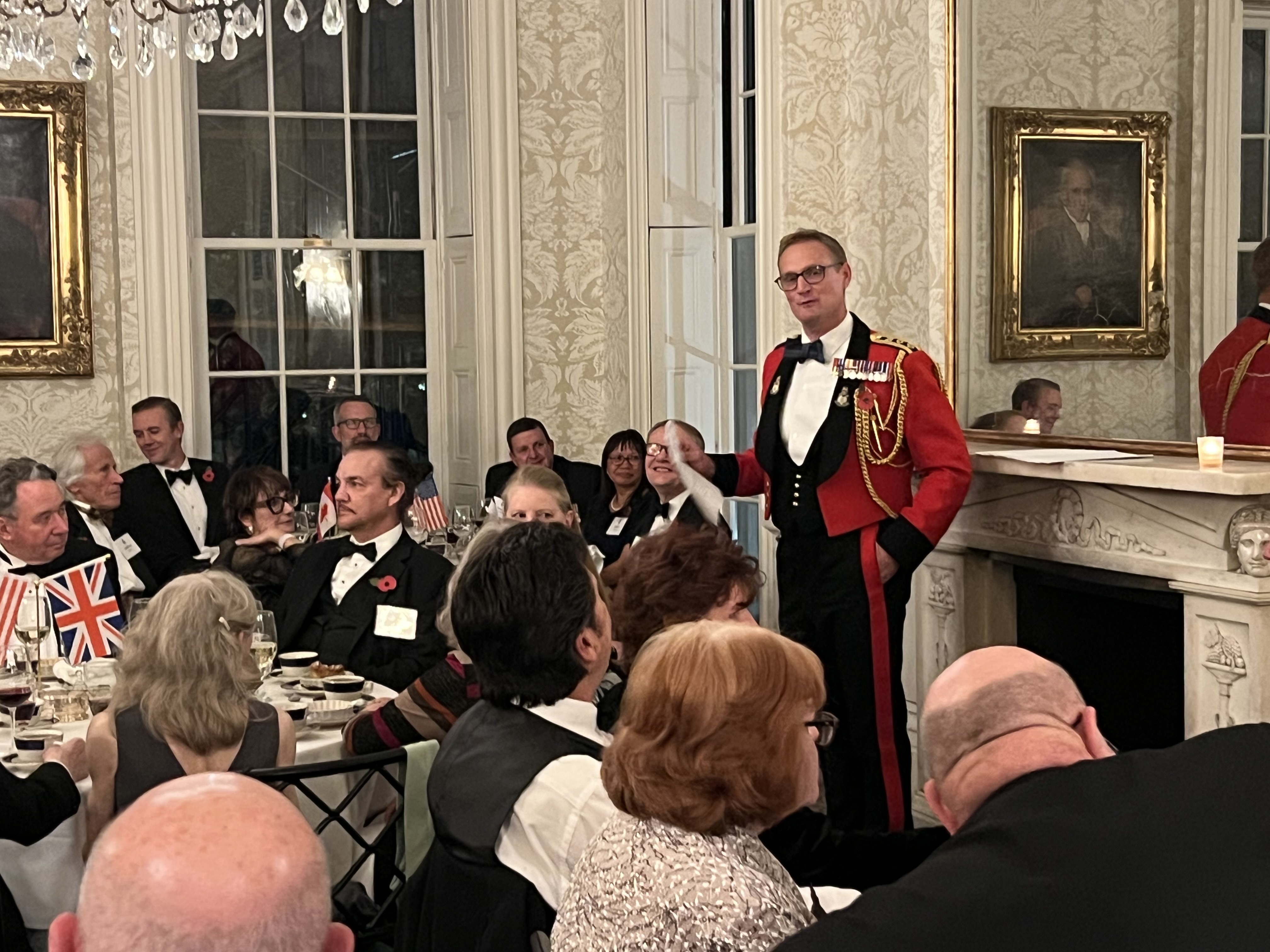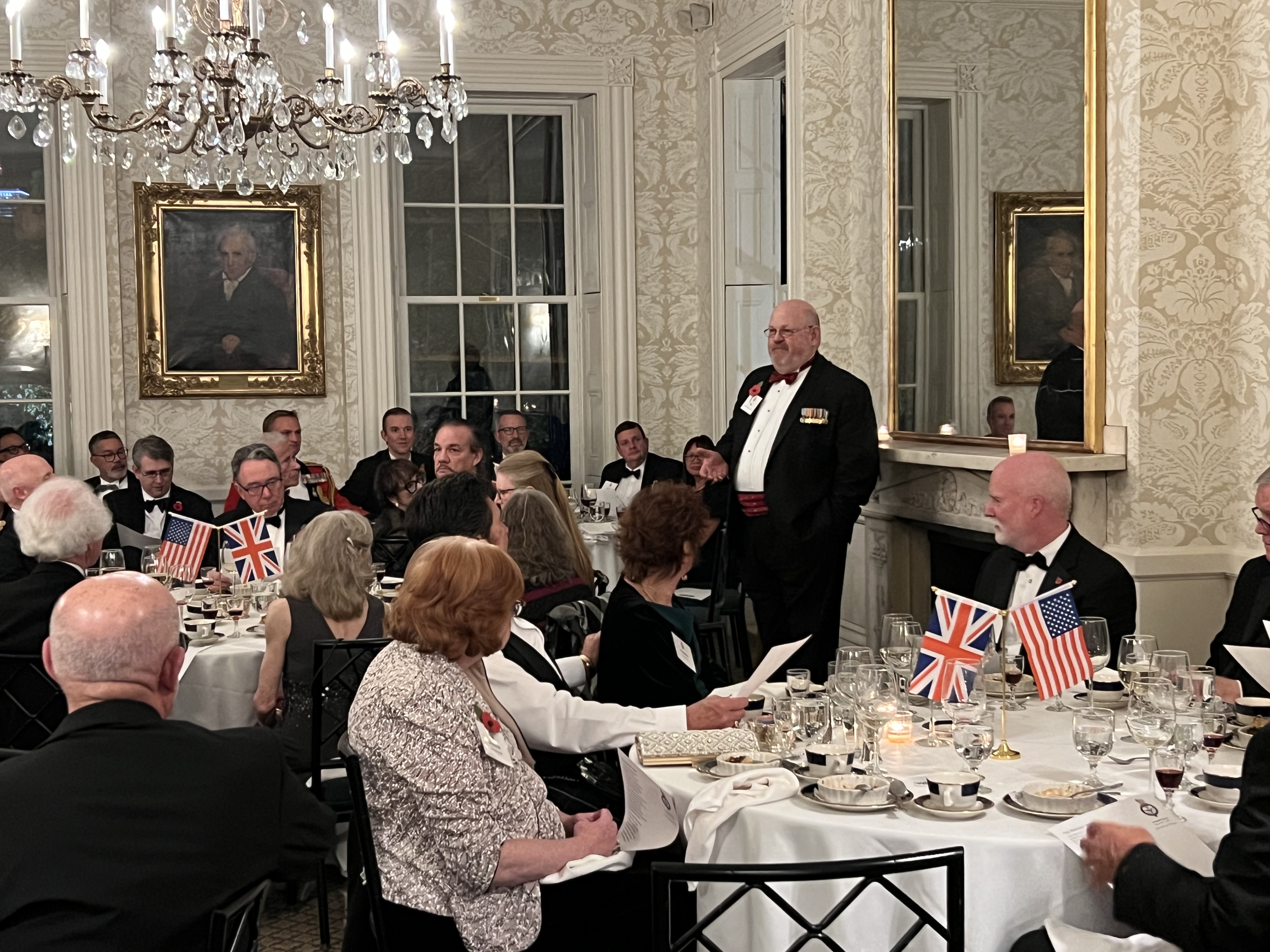 The club held its annual Armistice dinner on Friday 7 November, 2025 at the Union Club of Boston.  Our guest of honor and after dinner speaker was Colonel Ben Foster Royal Marines.  Colonel Foster serves as the Royal Marine Attaché to the USA and traveled up to Boston from Washington DC.  We also welcomed VIP guests David Clay MBE, the British Consul General to New England, Colonel Barry Leonard, the Canadian Air and Space Attaché to the USA, Brigadier General John Driscoll, and Lt. Col. Tim Shobbrook USMC.